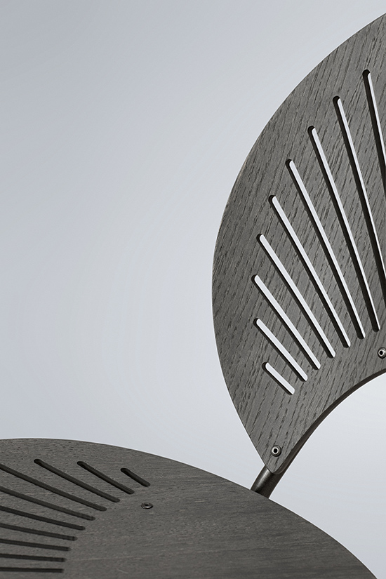 ファサードと同じように、チェアの切り取られた透かし彫りは、光と影の相互作用を引き起こし、空間に投影されたパターンと微妙な動きの感覚を生み出します。