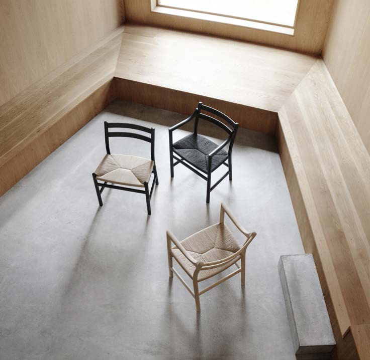 ハンス J. ウェグナーは、同年 1966年にデザインされた CH46 アームチェアや前年の CH44 ラウンジチェアと同じデザイン アイデアを使用しています。