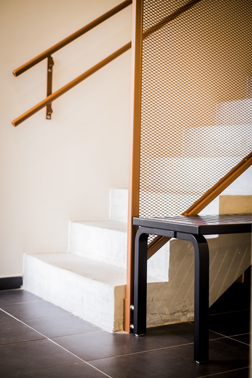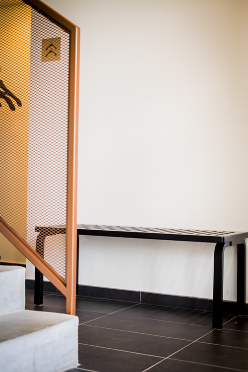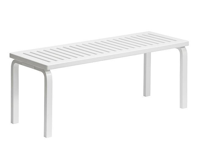 153 ベンチの座面は軽量化と持ち運び易さを追及した「隙間」が等間隔に施され、公共のスペースから家庭まで、あらゆる場所で使用できる汎用性があります。