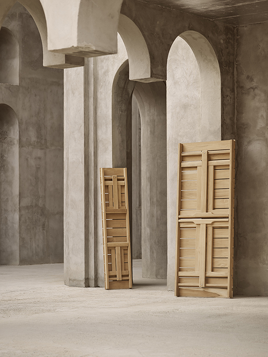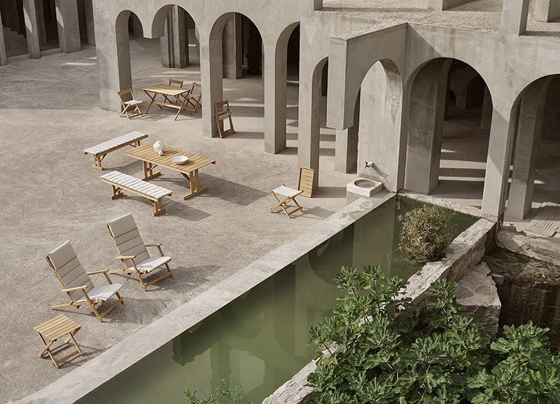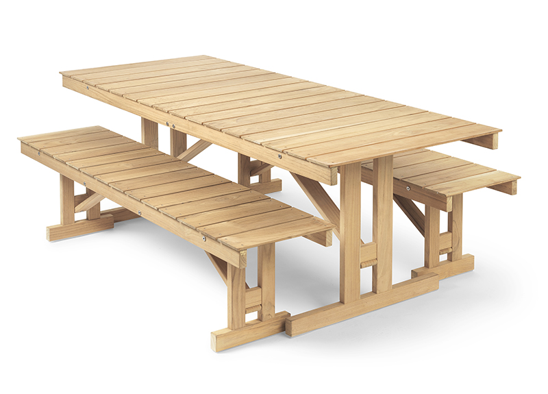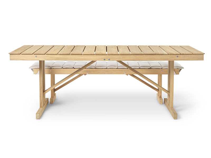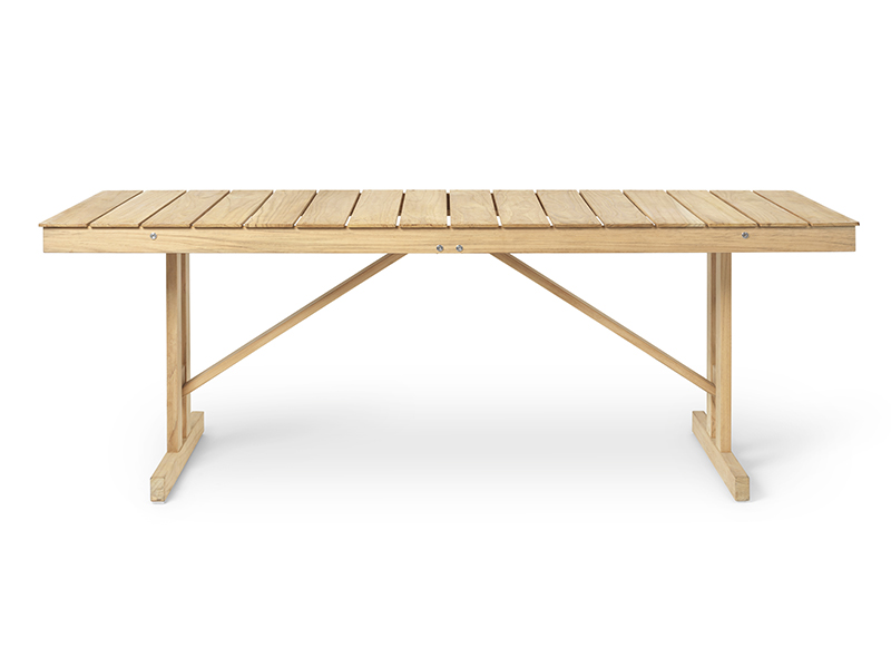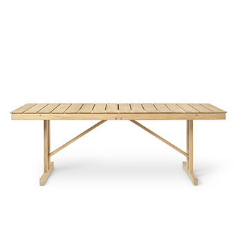 折りたたみ式の BM1771 アウトドアテーブルは、1971年にボーエ・モーエンセン(Borge Mogensen)によってデザインされました。 折りたたみ式なので、使用しないときは床に立てて収納することが可能です。