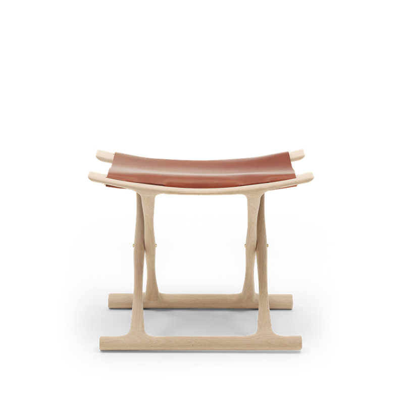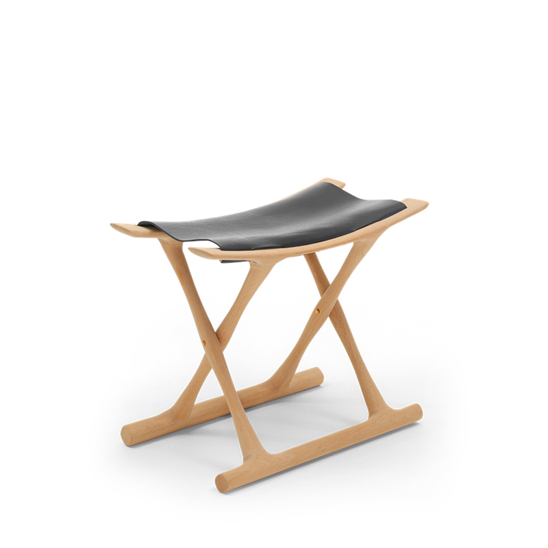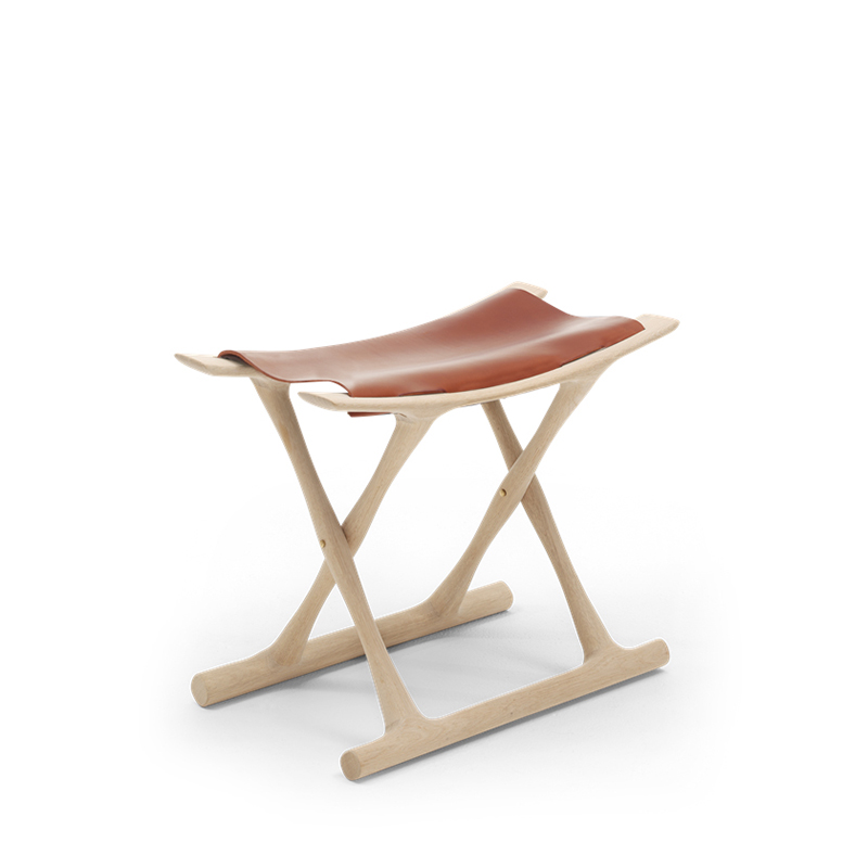座面にサドルレザーを使用した簡単に折りたためるスツールです。
