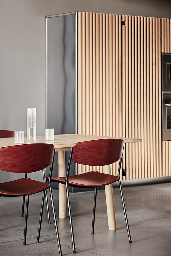 フレデリシアの工場で使用される木材は、樹齢 150年以上の節のないデンマークのオーク材で、それは時間とともに表情を変えながら、美しくなります。