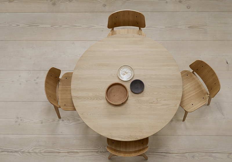 フレデリシアの工場で使用される木材は、樹齢 150年以上の節のないデンマークのオーク材で、それは時間とともに表情を変えながら、美しくなります。