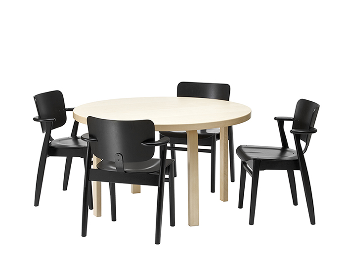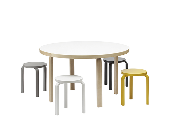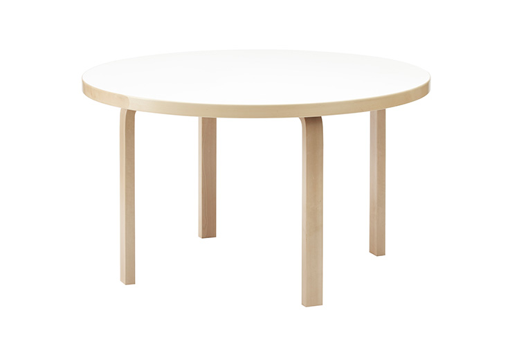 1956年に1935年にアルヴァ・アアルトがデザインした円形テーブルは、あらゆる空間に心地良く馴染みます。 ダイニングテーブル、働くためのデスク、子ども達のプレイルームに、目的に合わせて使うことができ、どこにあっても独自の存在感を放ちます。