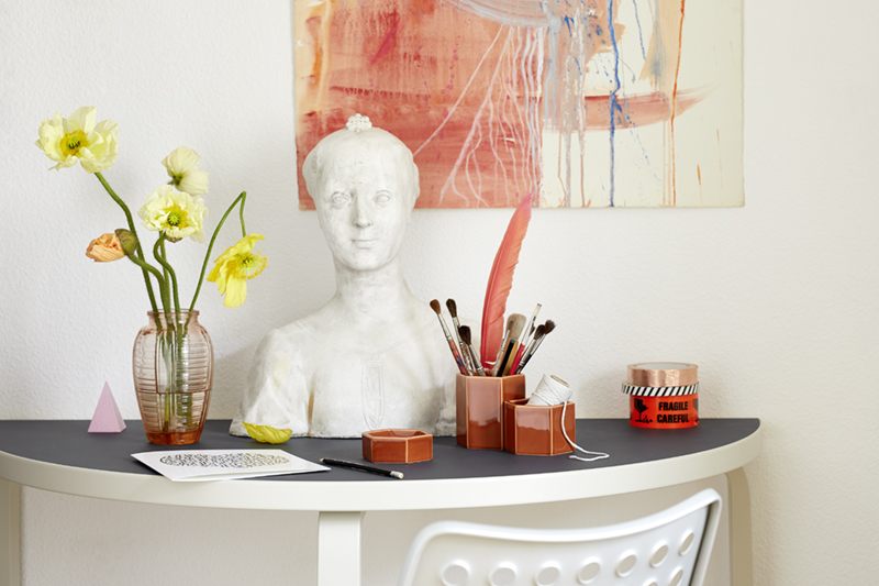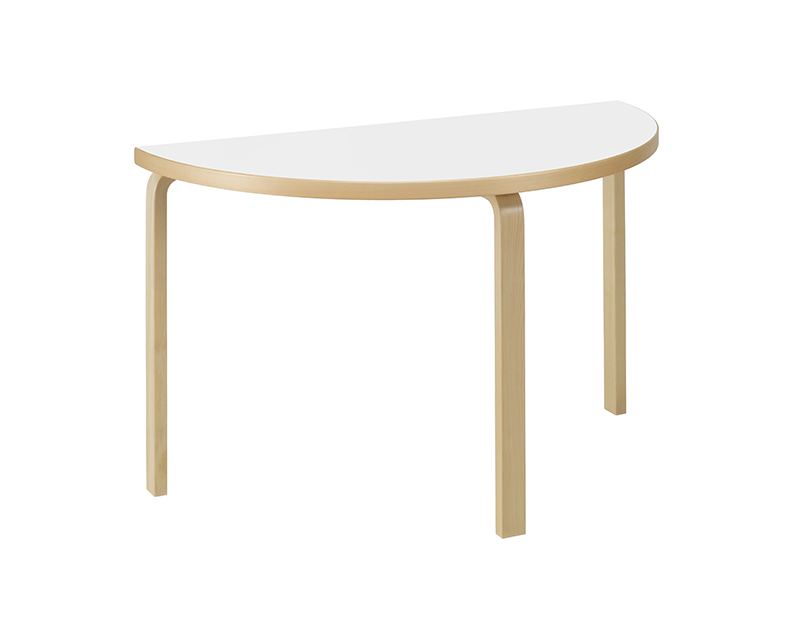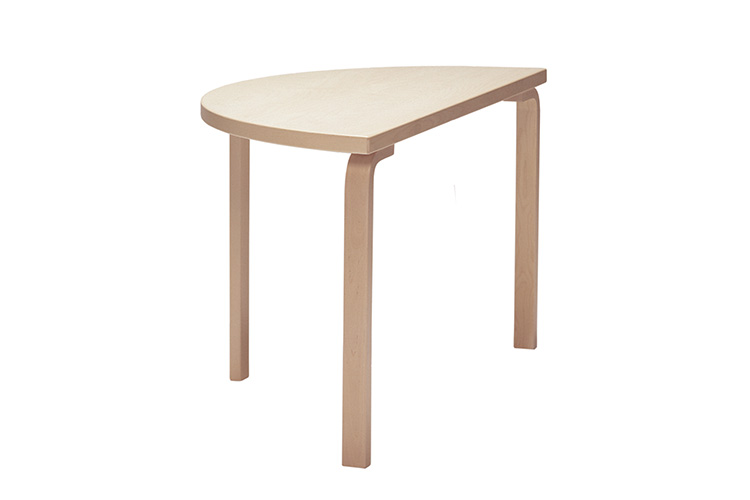1933年にアルヴァ・アアルトがデザインした L - Leg の半円形テーブルは、窓際の壁に接したデスクやコンソールとしてご使用いただけます。2つを繋げて円形テーブルにもできます。