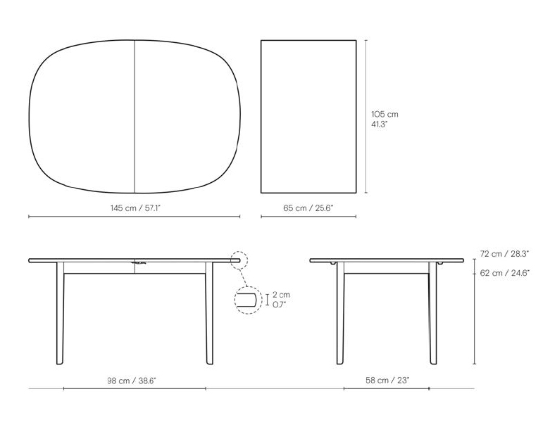 時代を超越してフレキシブルなダイニングシーンを作り出してきた OW224 ダイニングテーブルには、FSC認定オーク材が使用されており、オーク材またはMDFのグレーかブラックの伸長板を2枚まで追加することができます。