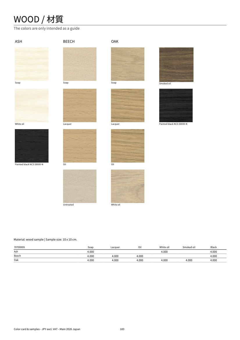 クリーム色〜赤茶色を帯びた白色で、年月が経つにつれ、飴色に変化します。 |